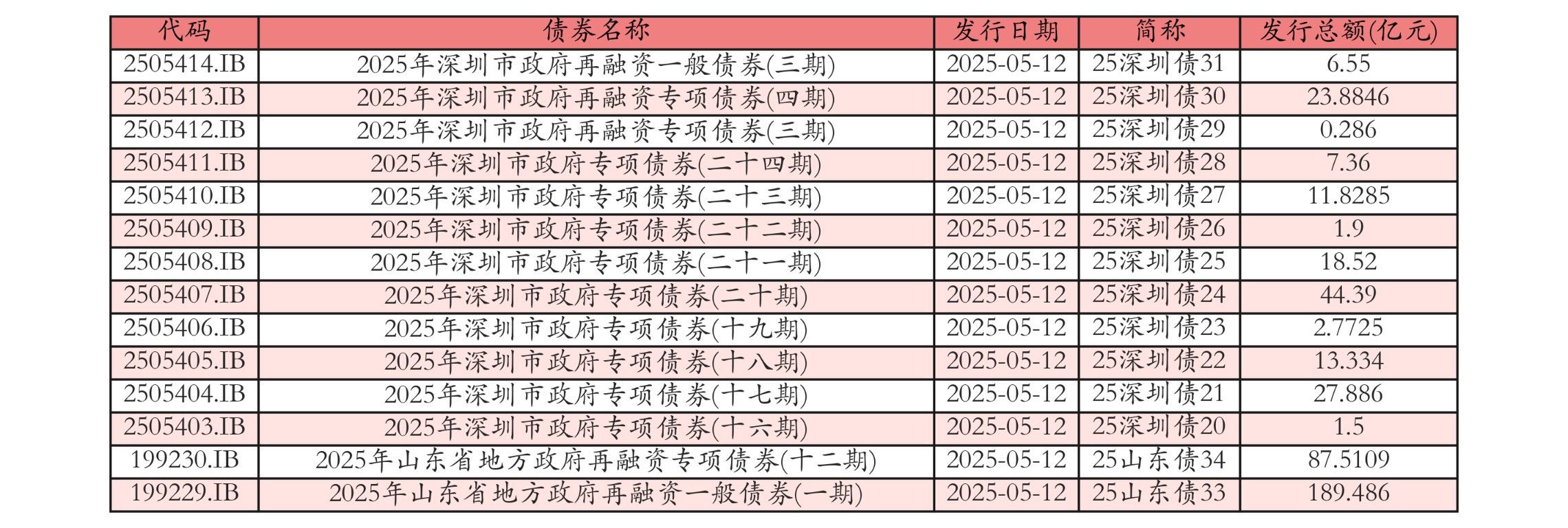 南财智讯5月12日电,南财金融终端数据显示,2025年5月12日全国共发行14支地方政府债,共计437.2085亿元。其中,政府一般专项债发行2支,共196.036亿元;地方政府专项债发行12支,共241.1725亿元。各地方政府所发行债券中,25山东债33、25深圳债24发行规模靠前,发行金额分别为189.486亿元、44.39亿元。投标方面,各地方政府所发行债券中,25山东债33、25深圳债24全场中标倍数靠前。其中:25山东债33全场中标倍数为20.52,全场中标利率为1.78%,边际倍数为1.18;25深圳债24全场中标倍数为15.09,全场中标利率为2.07%,边际倍数为1.11。今日发行地方政府债详情如下表: